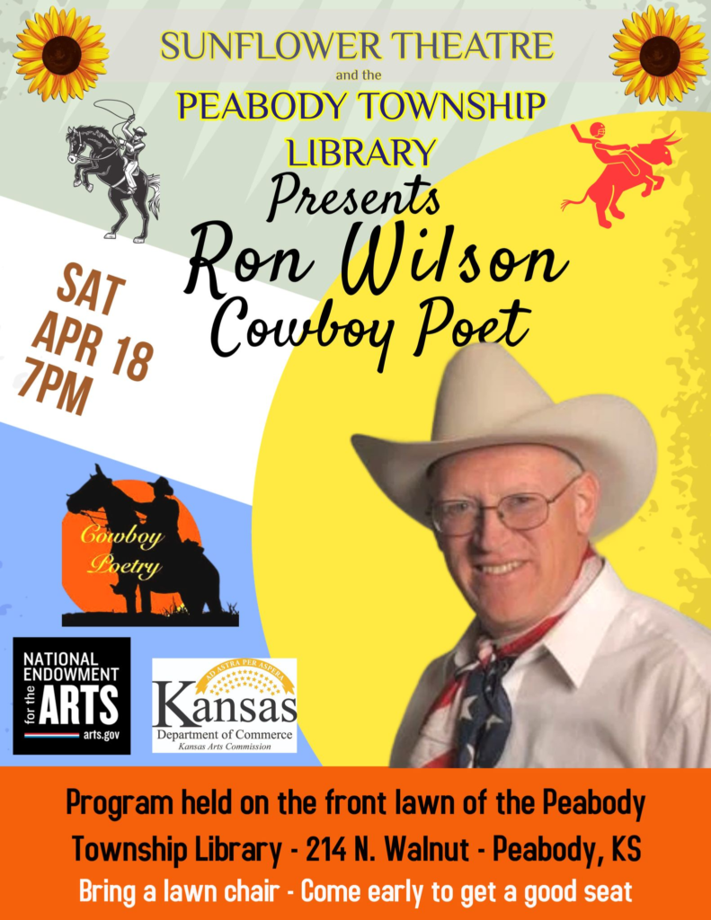 Manhattan, Kansas. Proclaimed a “Poet Lariat” (not laureate) by Governor of Kansas Bill Graves, Ron chairs the annual Kansas Cowboy Poetry Contest, hosts the monthly online video show called “Cattle Trails Showcase,” appears in a weekly Facebook Live video segment called “Live at the Lazy T Ranch,” and produces a biweekly newspaper column called “Cowboy Up.” He is the only cowboy poet in history to present a cowboy poem at a Kansas Governor’s inauguration. He is a spokesman for the National Day of the Cowboy organization, an Ambassador for the National Multicultural Western Heritage Museum in Fort Worth, Texas, a 2022 inductee into the Kansas Cowboy Hall of Fame, and national president of Western Wordsmiths. He says his poetry is all-original, humorous, family- friendly, patriotic, and most of the time, it even rhymes.